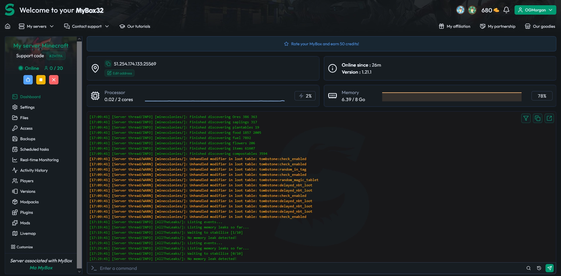 For that reason, don’t hesitate to consider a MyBox 12 right away: it gives you more headroom and a smoother experience. To play comfortably and get the best out of the modpack, we recommend the Perf range, which is naturally better suited to large modpacks.